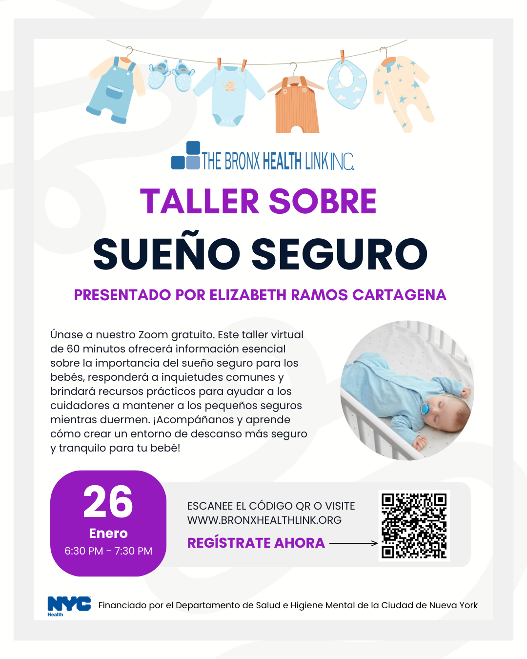 Este taller virtual de 60 minutos brindará a los participantes información sobre la importancia de los comportamientos de sueño seguros para los bebés, abordará inquietudes y brindará recursos adicionales para ayudar a los cuidadores a mantener a los bebés seguros durante el tiempo de sueño.