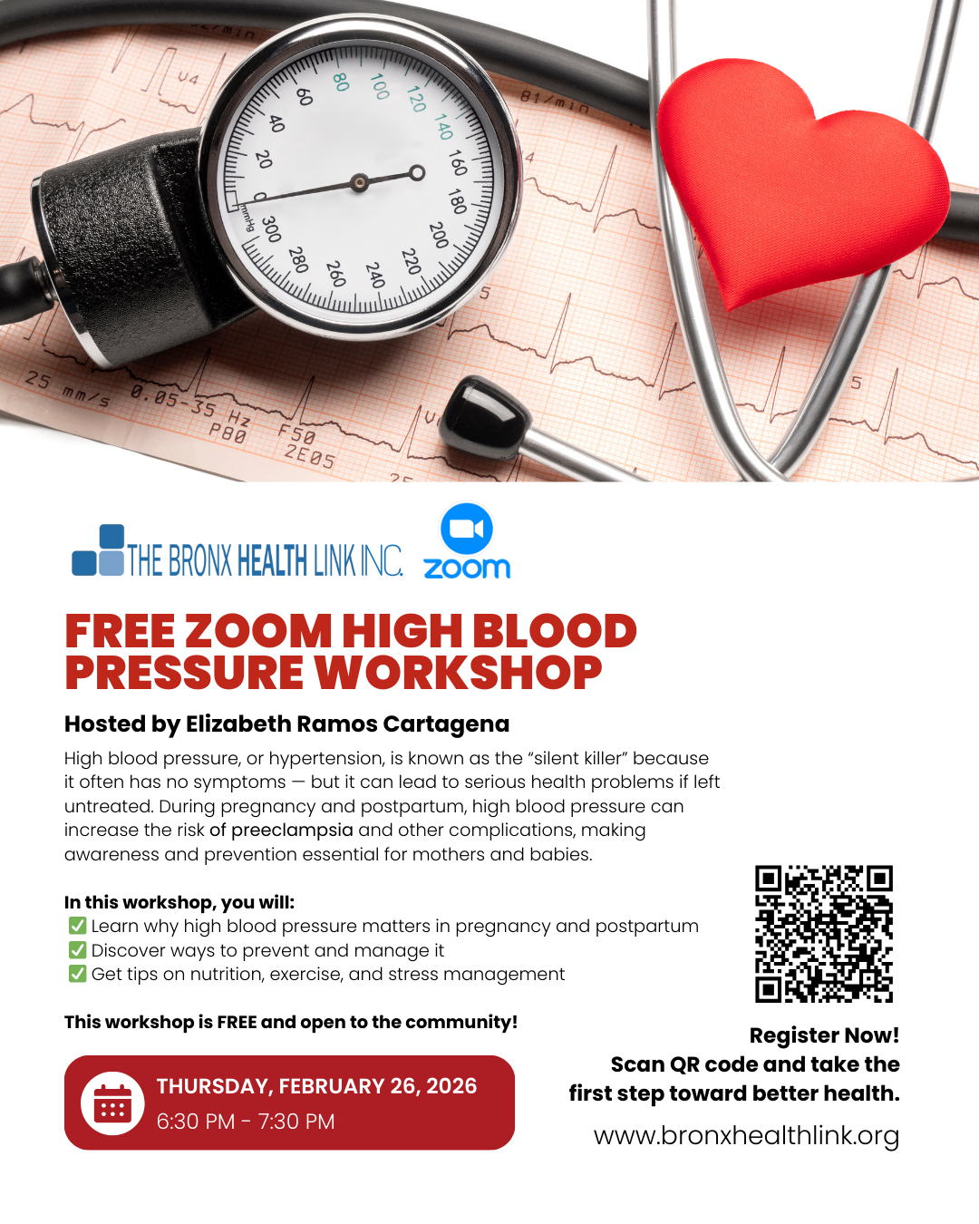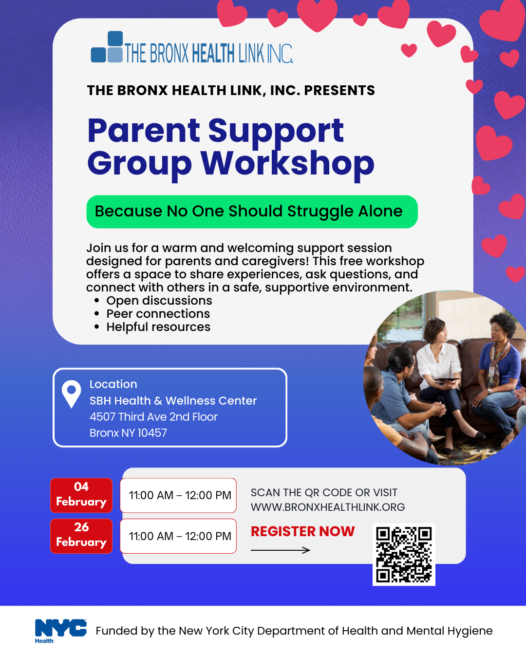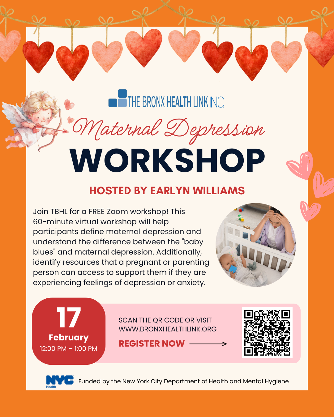 The Bronx Health Link amplifies the voices of Bronx residents and community-based organizations and equips them with the tools to achieve health equity. Join a breastfeeding, safe sleep, self-care, and maternal depression workshop.