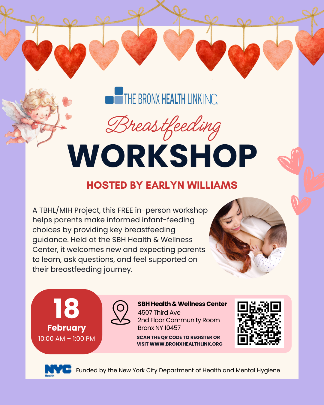 This in-person workshop, held at SBH Health & Wellness Center (4507 Third Ave, 2nd Floor Community Room, Bronx, NY 10457), is a TBHL/MIH Project designed to help parents make informed infant feeding choices. It provides essential breastfeeding information to support a more confident, positive, and empowered feeding experience.