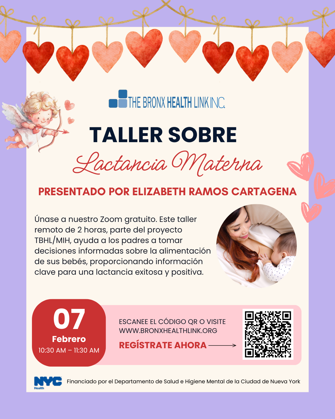 Este taller remoto de 2 horas, que es un proyecto de TBHL/MIH, tiene como objetivo ayudar a los padres a tomar una decisión informada sobre la alimentación de sus bebés, brindándoles a los participantes información clave sobre la lactancia materna. Con un mayor conocimiento y confianza en sí mismos, la lactancia materna puede ser una experiencia positiva y exitosa.
