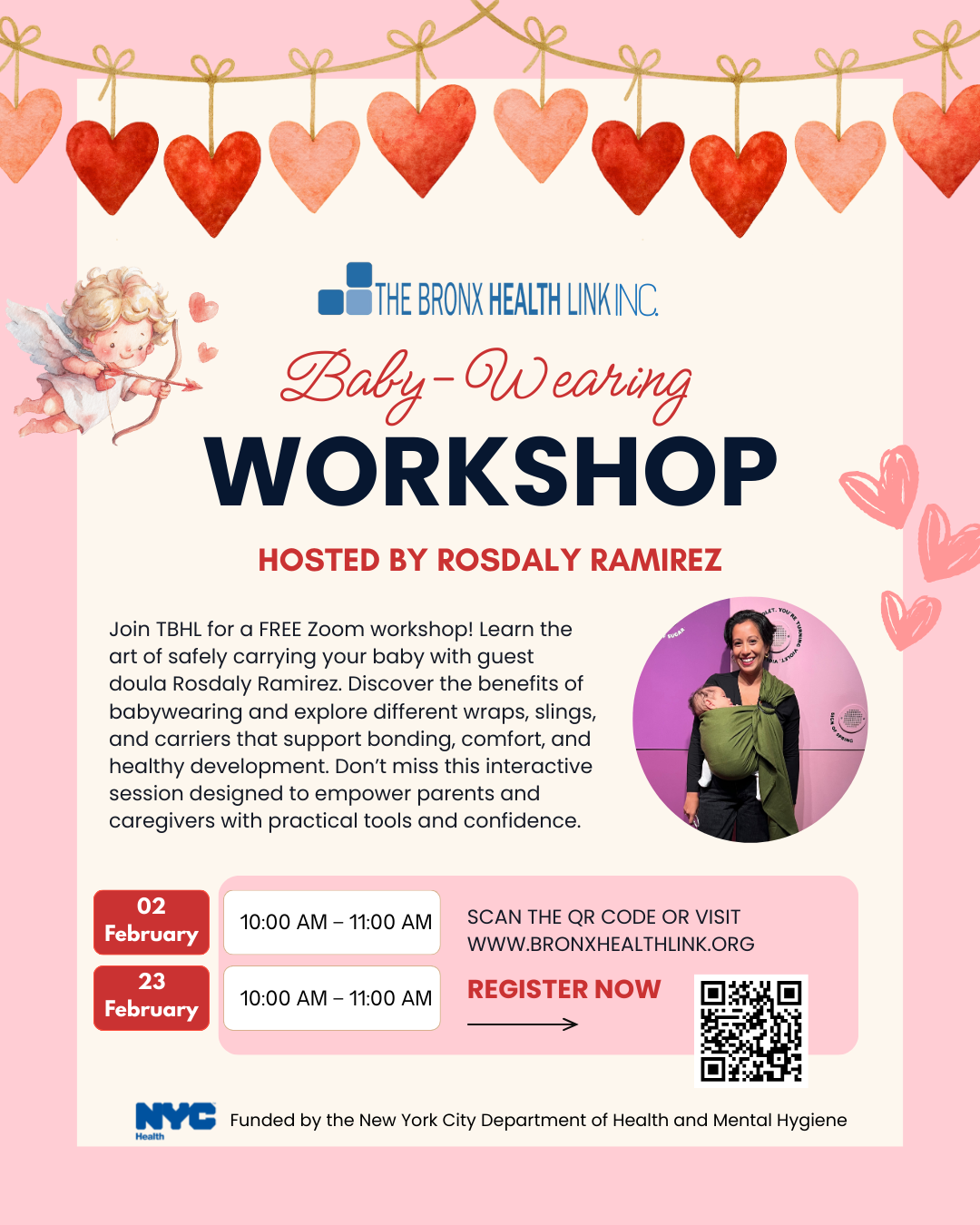 Join TBHL for a baby-wearing workshop with guest doula Rosdaly Ramirez! Learn the art of safely carrying your baby and explore the benefits of babywearing with wraps, slings, and carriers.