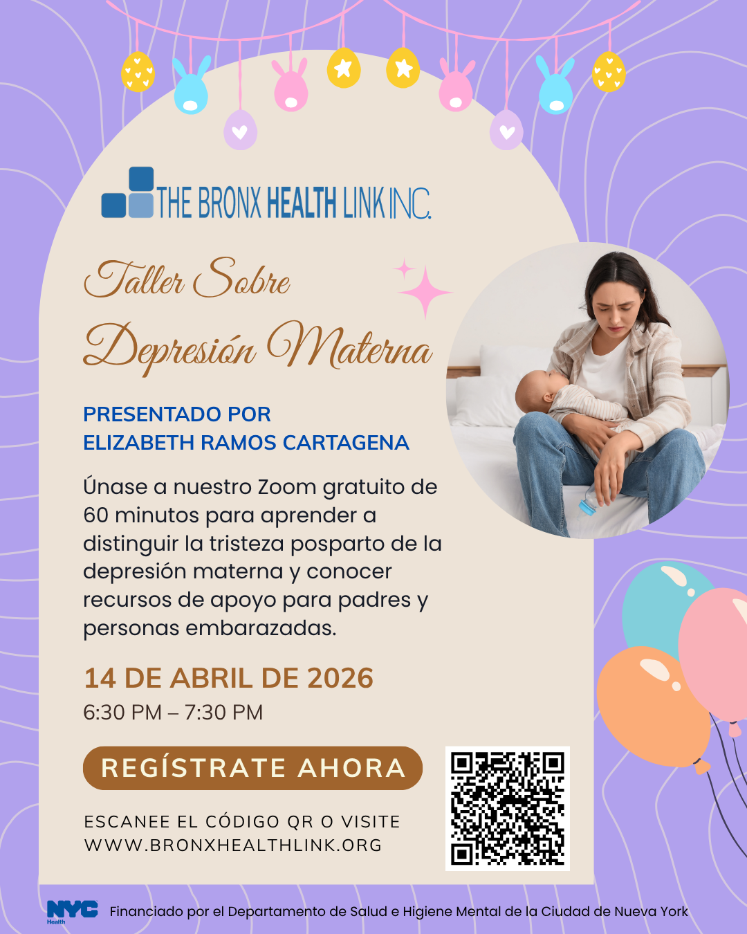 The Bronx Health Link amplifies the voices of Bronx residents and community-based organizations and equips them with the tools to achieve health equity. Join a breastfeeding, safe sleep, self-care, and maternal depression workshop.